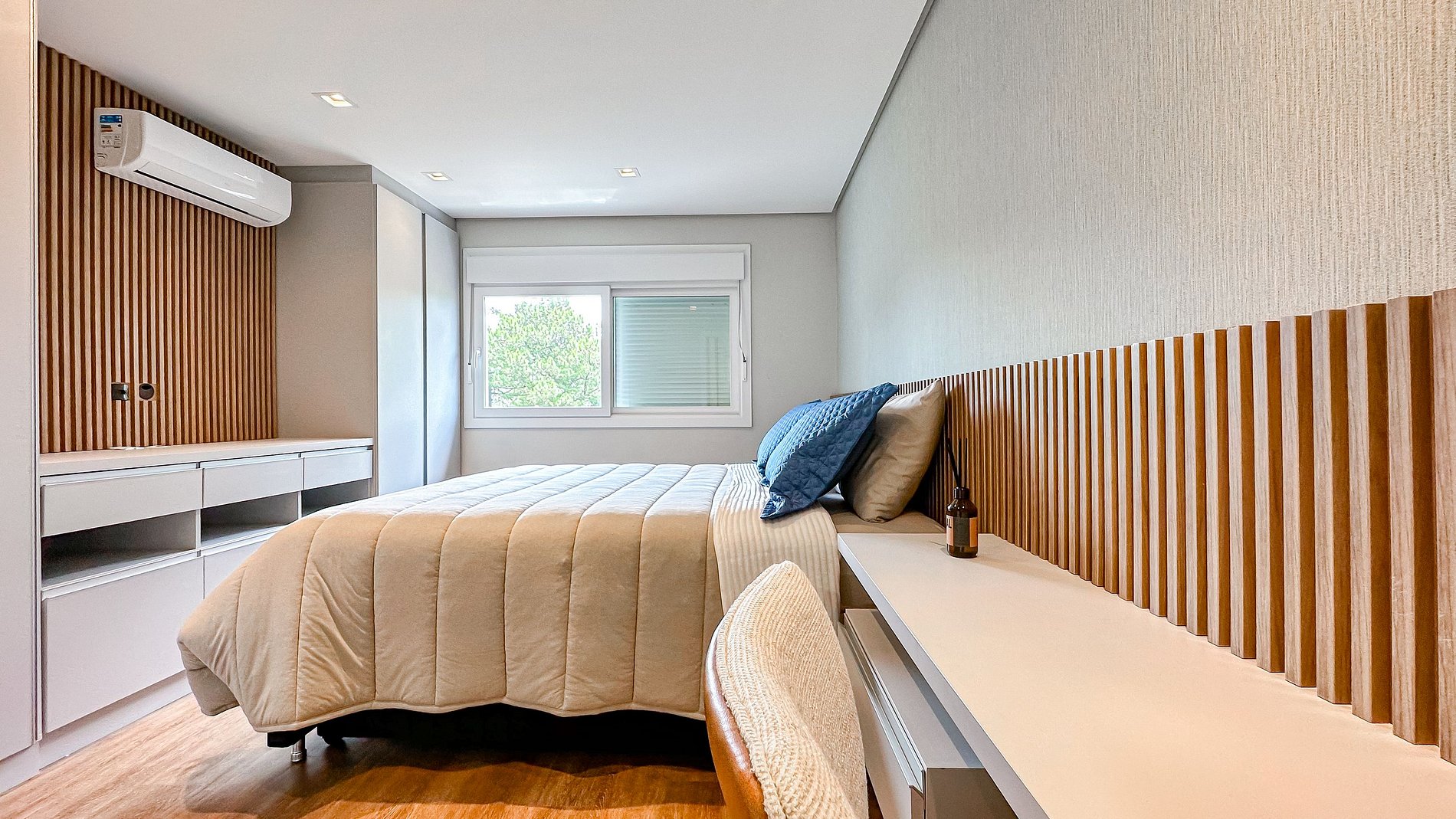 1 dormitório ( cama de casal + banheiro + split quente e frio + cama auxiliar)