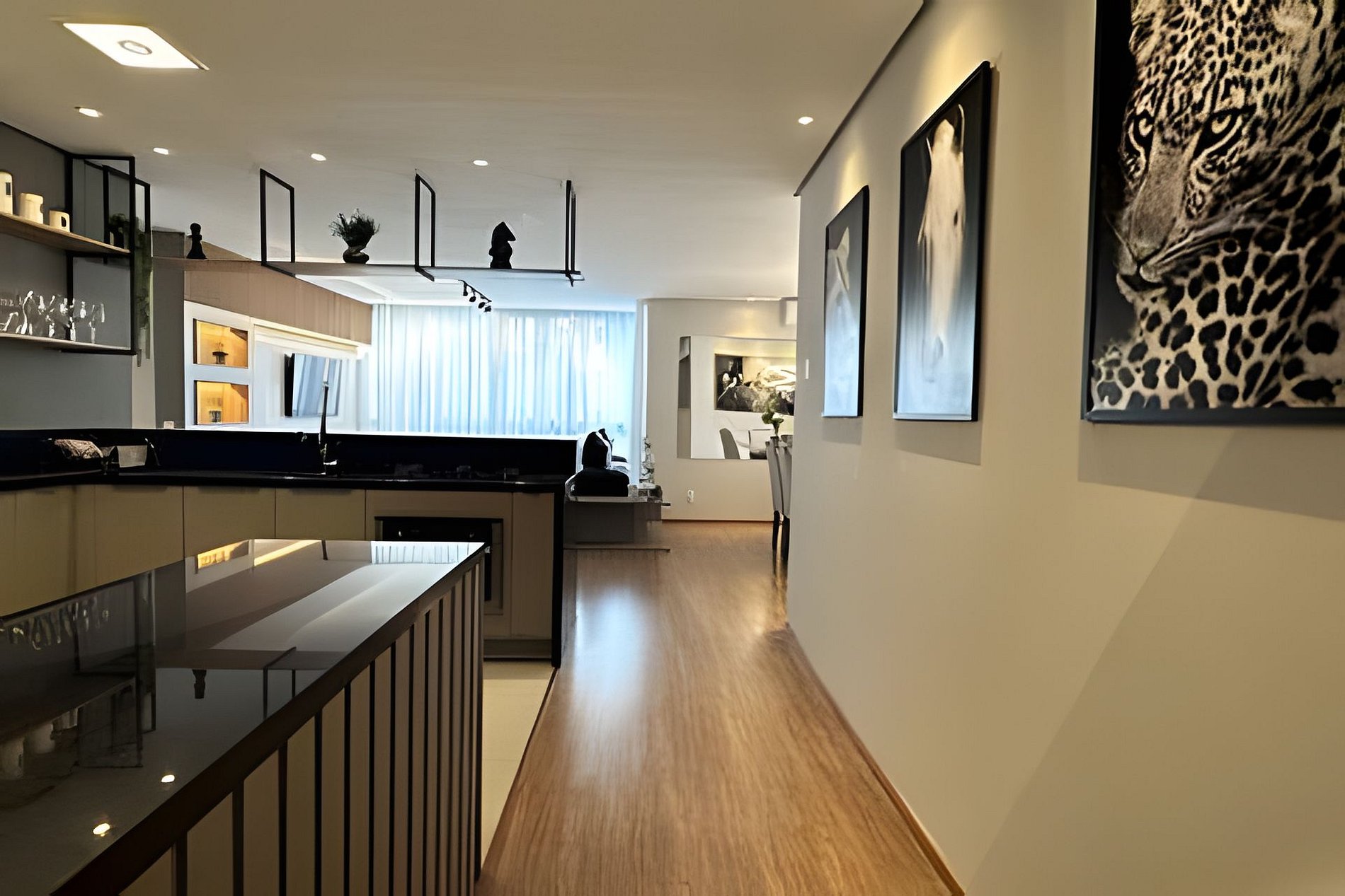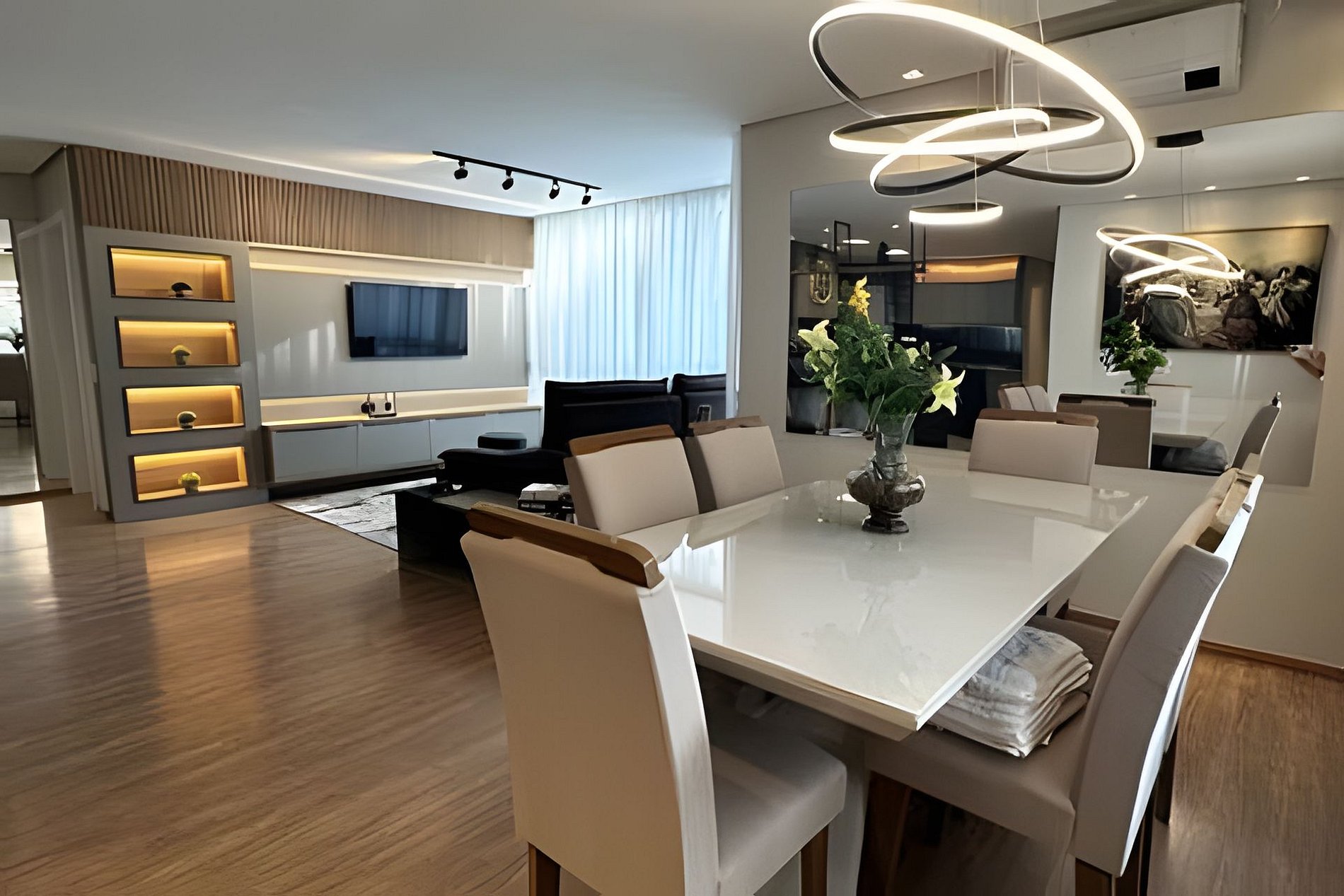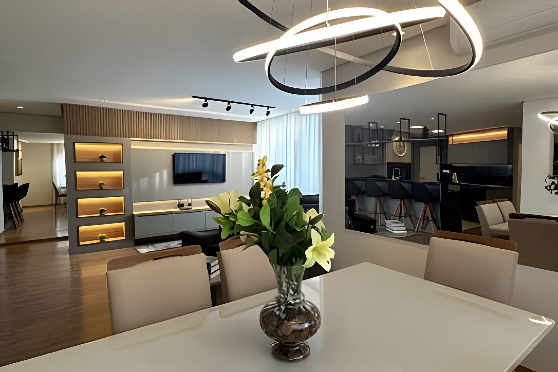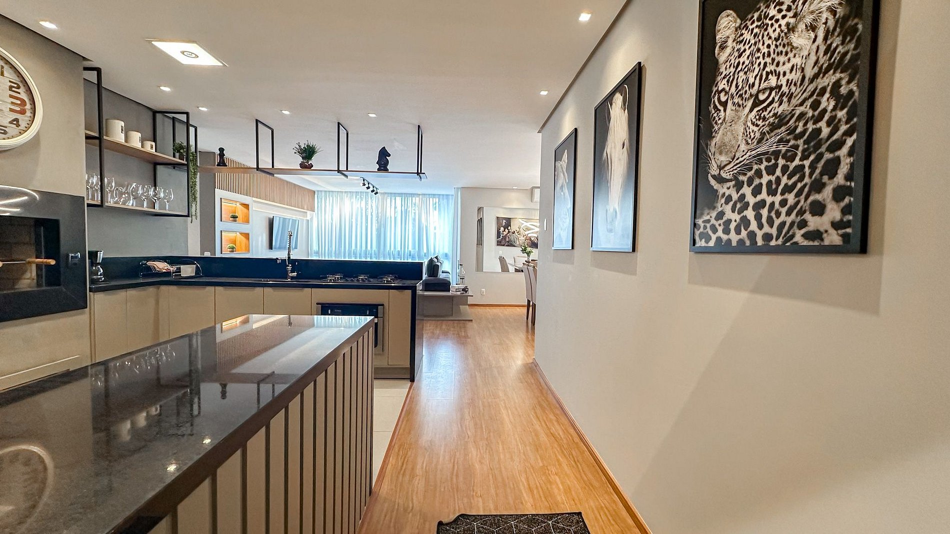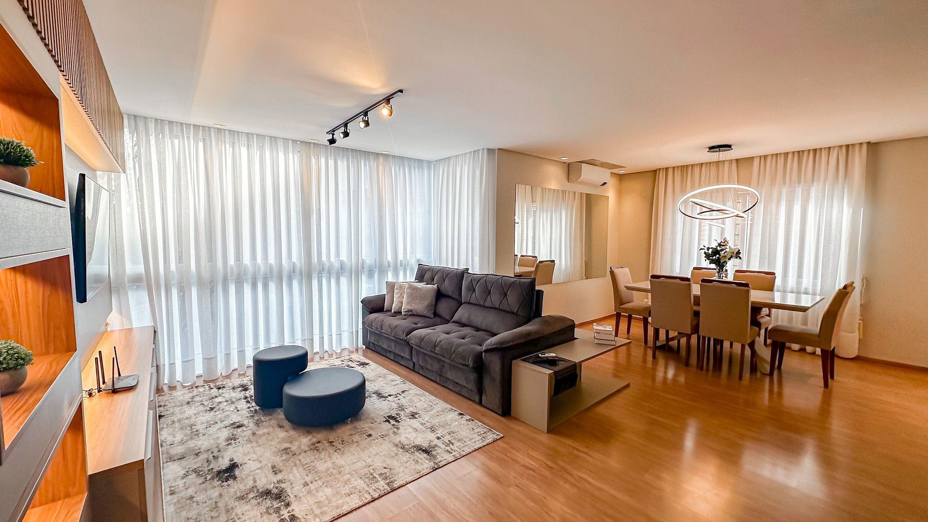 Ambientes amplos, bem iluminados e ventilados, com grandes janelas que deixam a luz entrar e trazem a beleza de Gramado para dentro do apartamento.