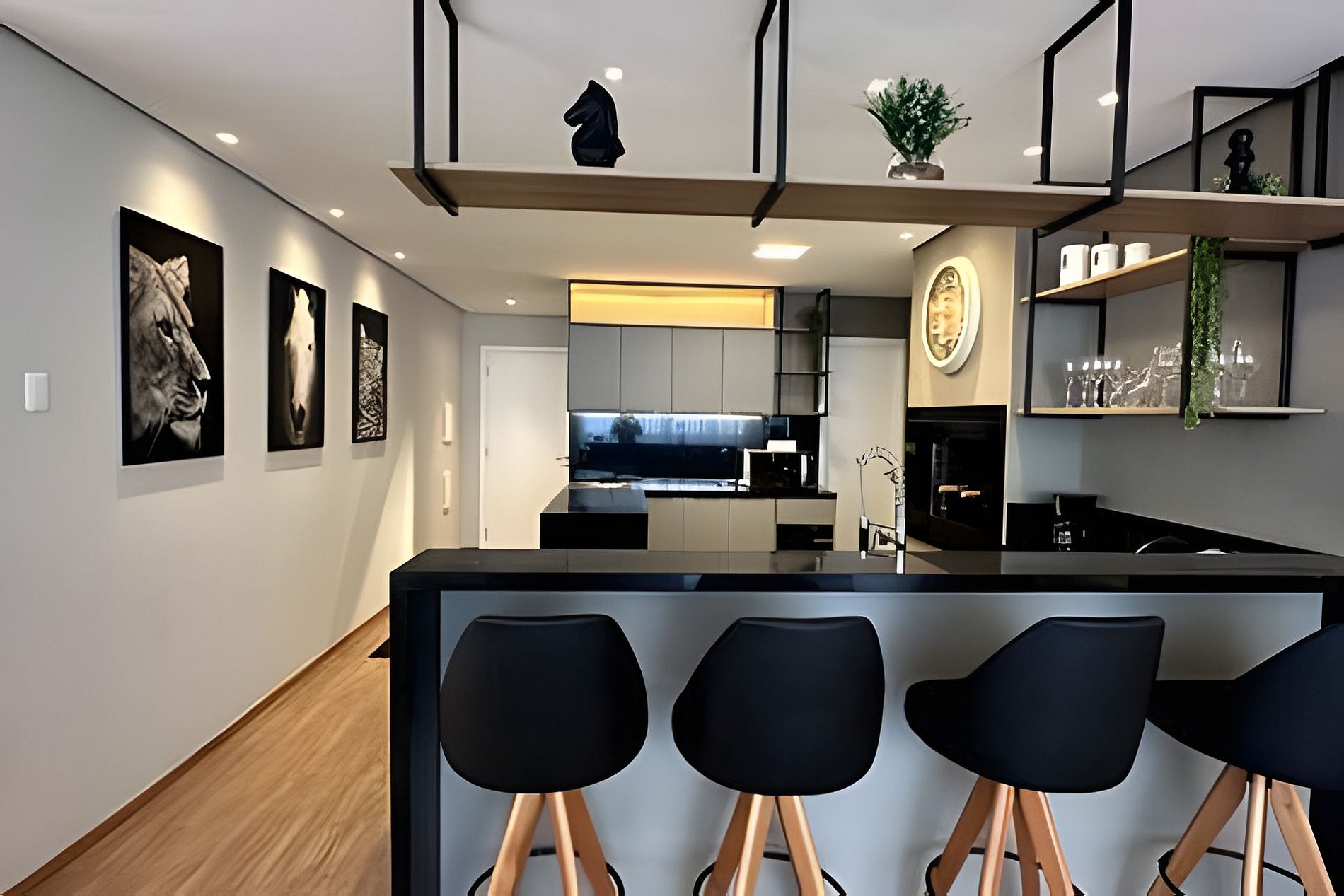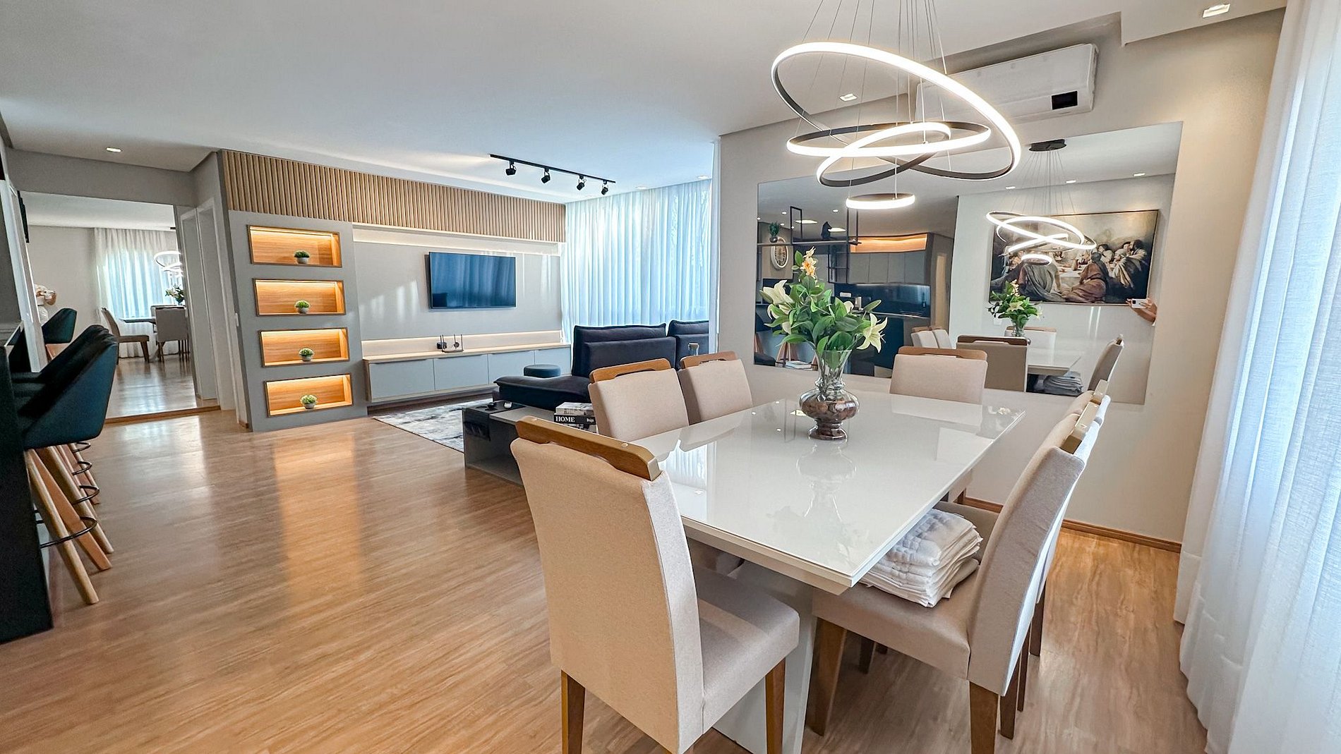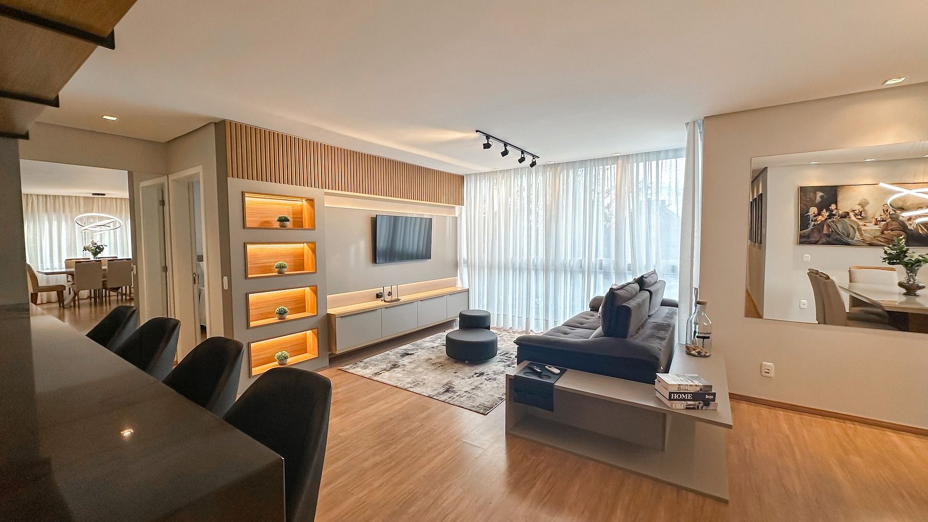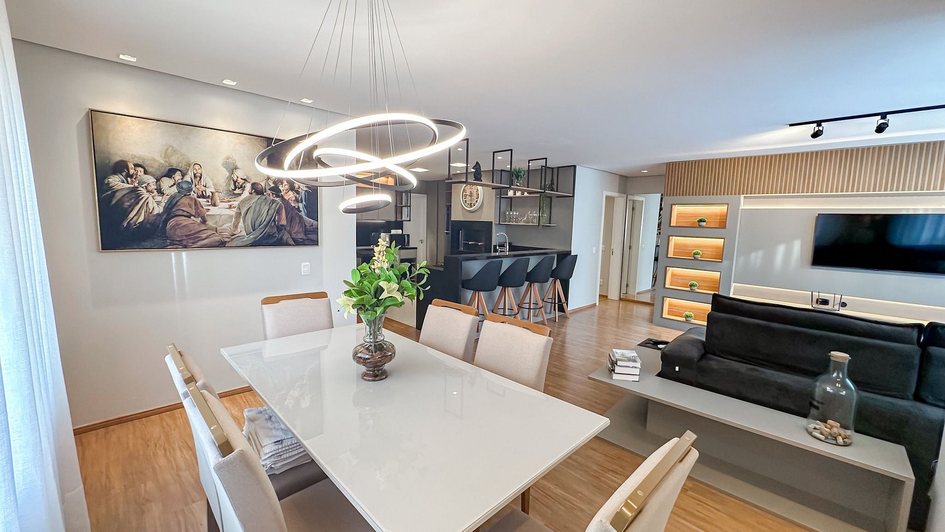 Ambientes amplos, bem iluminados e ventilados, com grandes janelas que deixam a luz entrar e trazem a beleza de Gramado para dentro do apartamento.