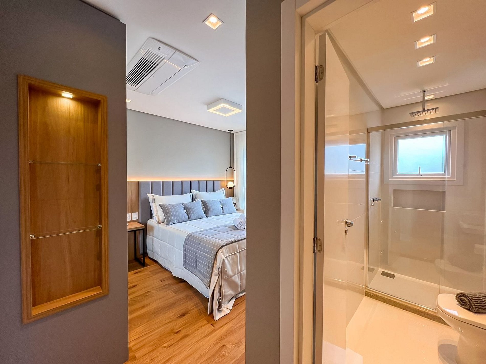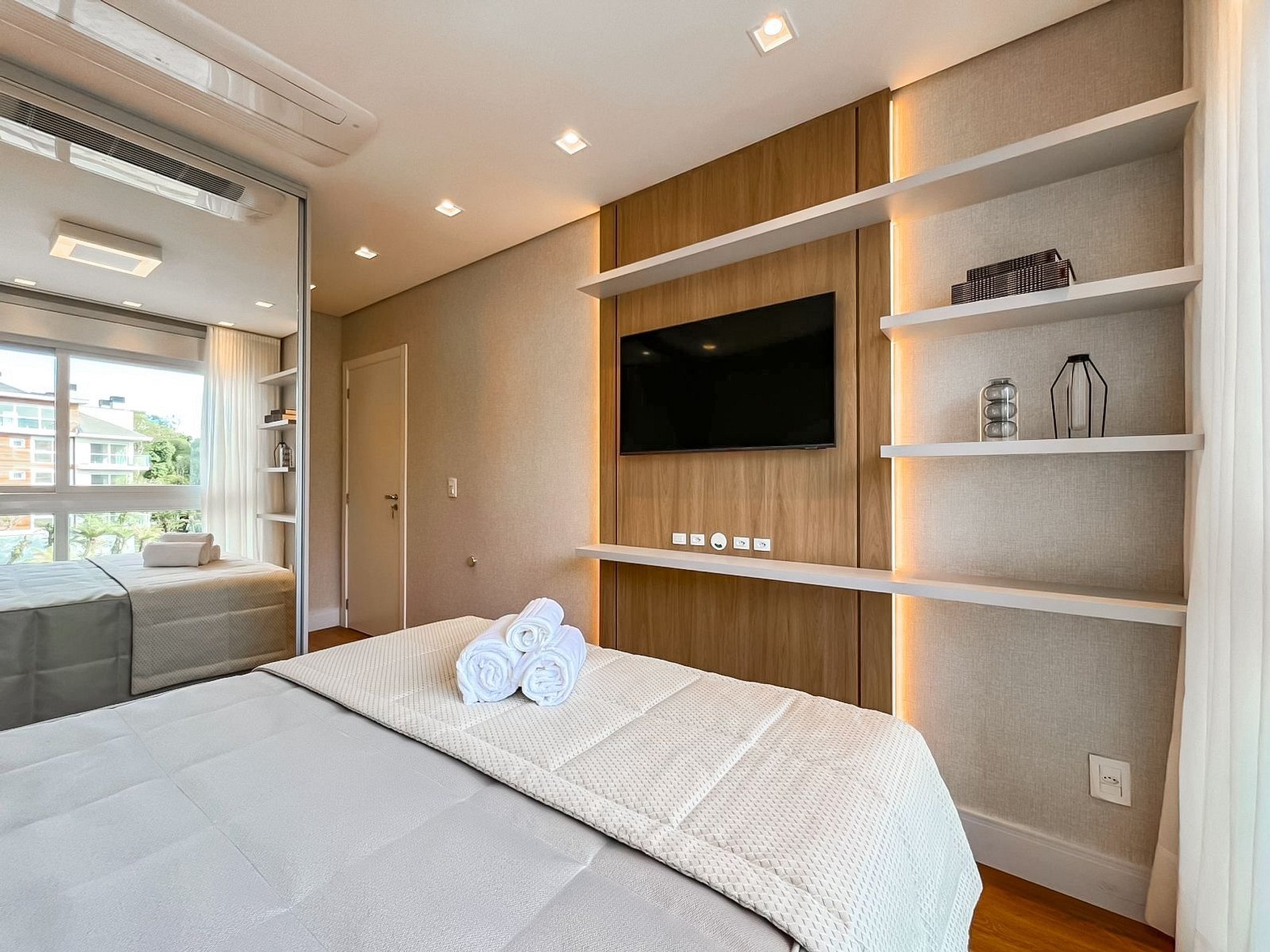 Os chuveiros são a gás e todos cômodos possuem ar condicionado quente e frio.