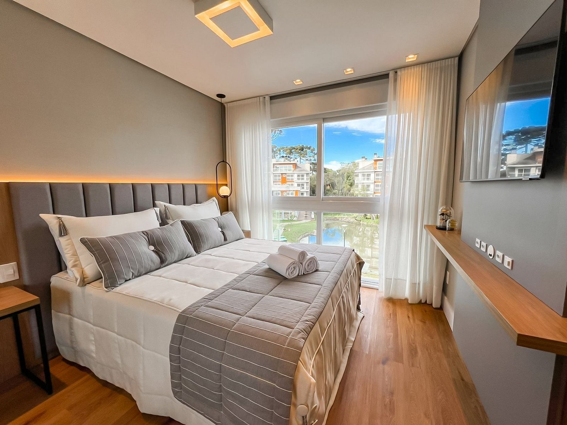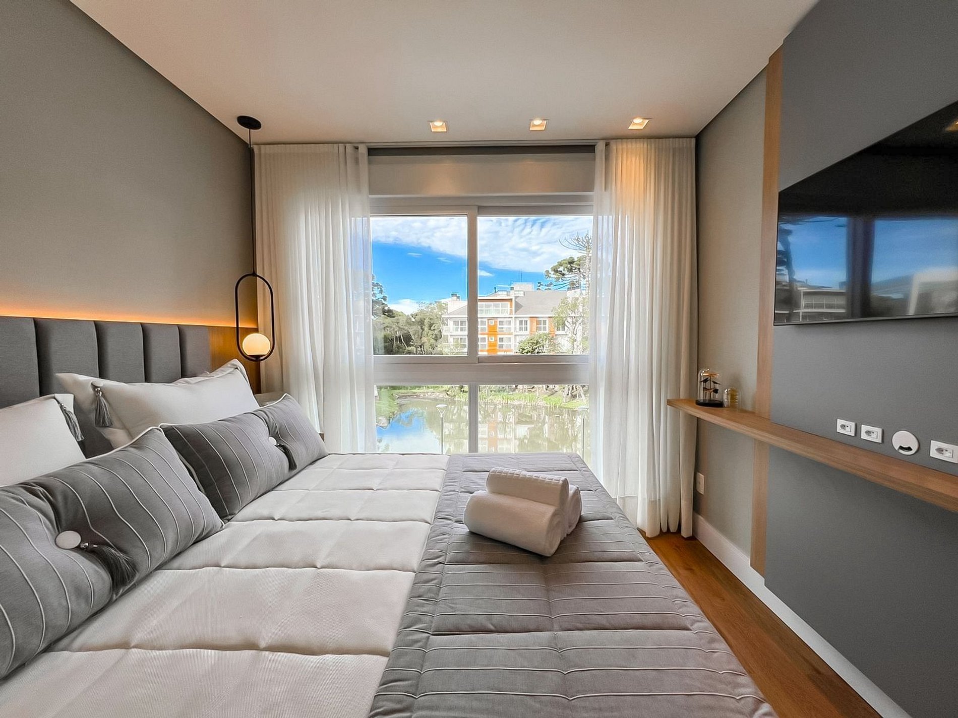 Sofisticação, conforto e comodidade é o que você encontrará em nosso apartamento em Gramado. Um local novo, cheio de estilo e pensado em cada detalhe para oferecer a você a melhor experiência por aqui. O apto é completo, espaçoso, com sacada em L que contorna a sala, possibilitando uma lindissima vista para o Lago. Cozinha completa com churrasqueira, sendo perfeito para famílias ou grupo de amigos que procuram uma hospedagem incrível.