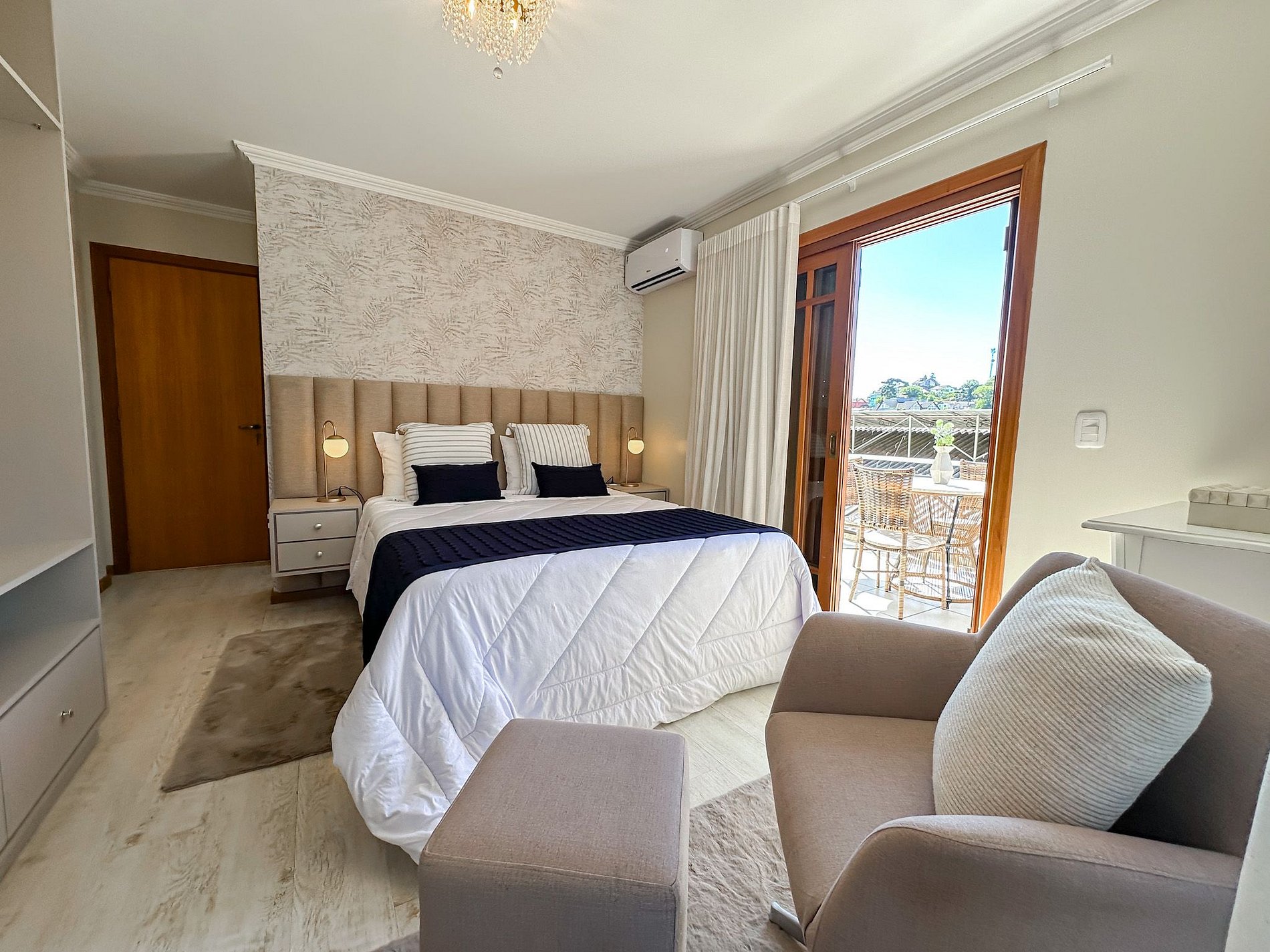 Moderno, com sacada e terraço com vista para a cidade, conta com 2 dormitórios, sendo 1 deles suite. Wi-Fi, Smart TV, cozinha completa e 1 vaga de garagem.