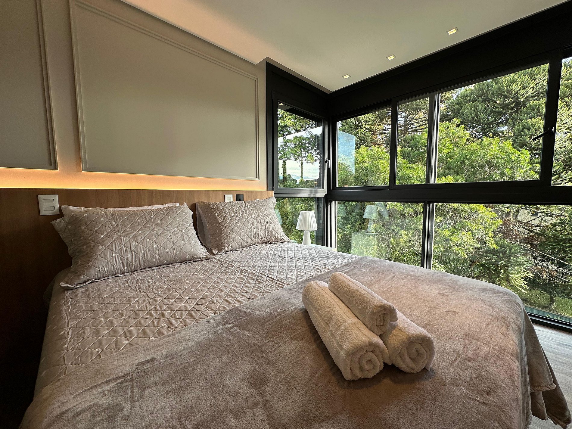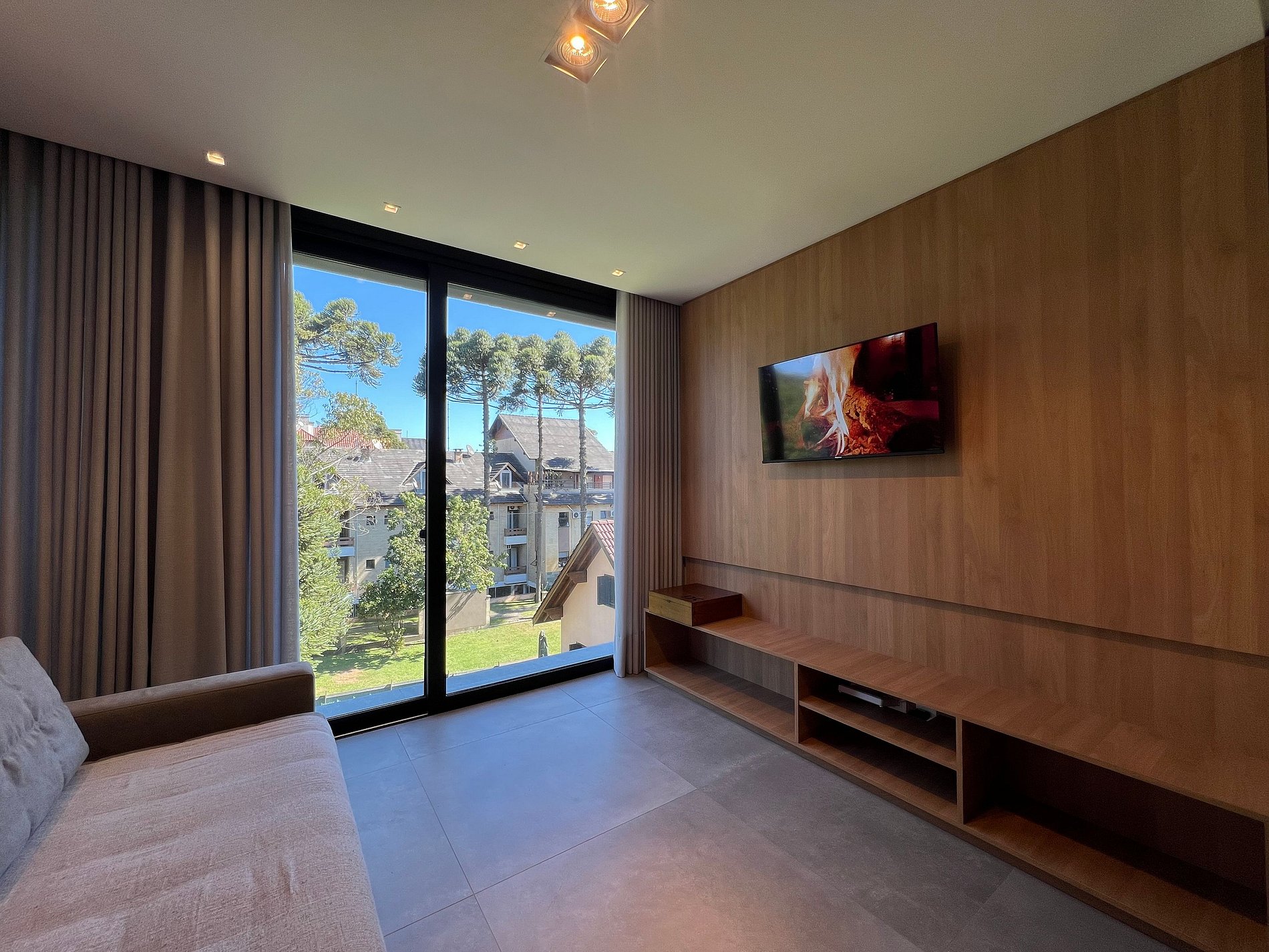 Nosso apartamento foi pensado para proporcionar conforto e bem-estar durante sua estadia na Serra Gaúcha. Com móveis novos e elegantes, o espaço de um quarto acomoda até 5 pessoas com: