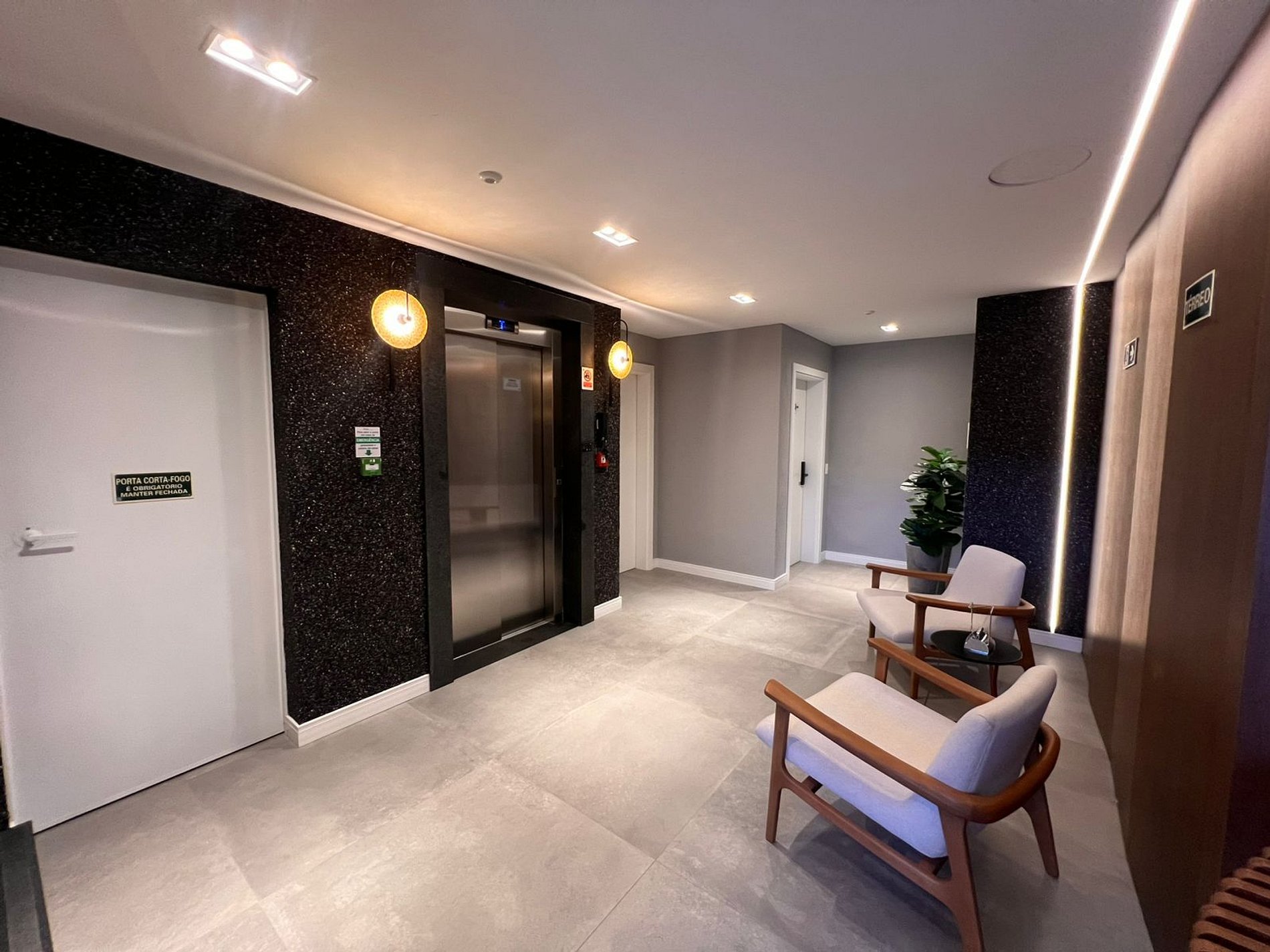 Prédio moderno e com elevador; -