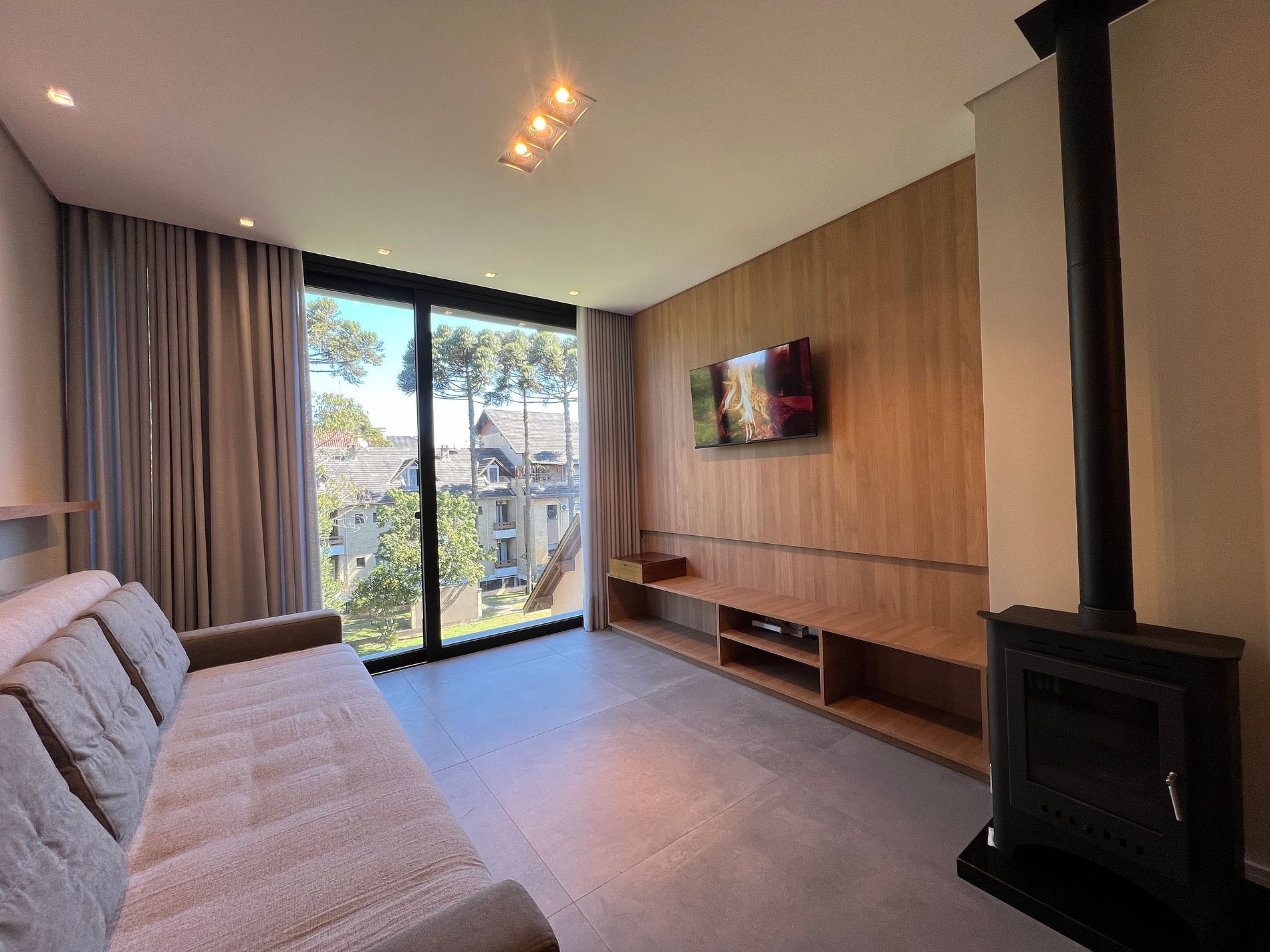 Nosso apartamento foi pensado para proporcionar conforto e bem-estar durante sua estadia na Serra Gaúcha. Com móveis novos e elegantes, o espaço de um quarto acomoda até 5 pessoas com: