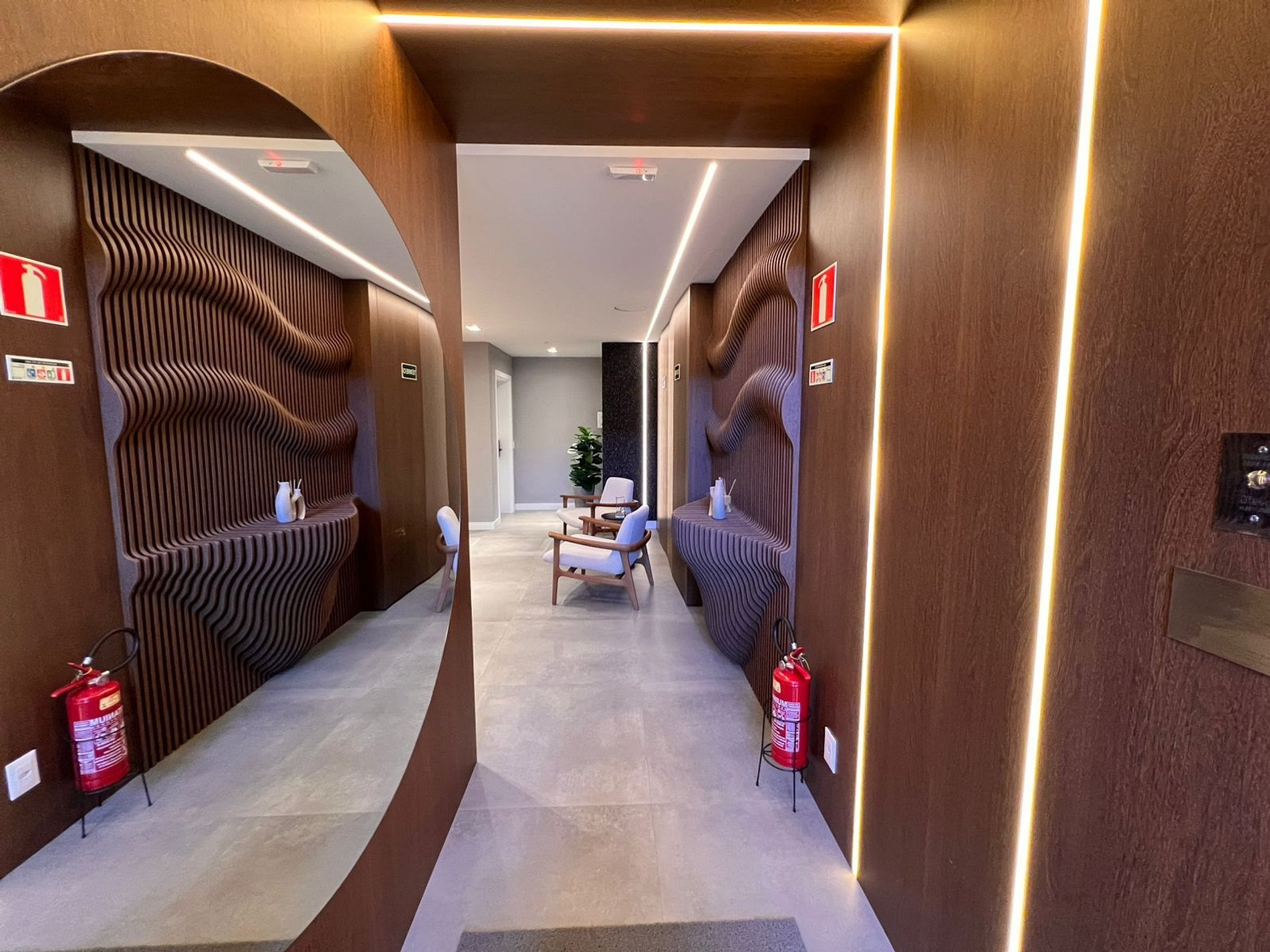 Prédio moderno e com elevador; -