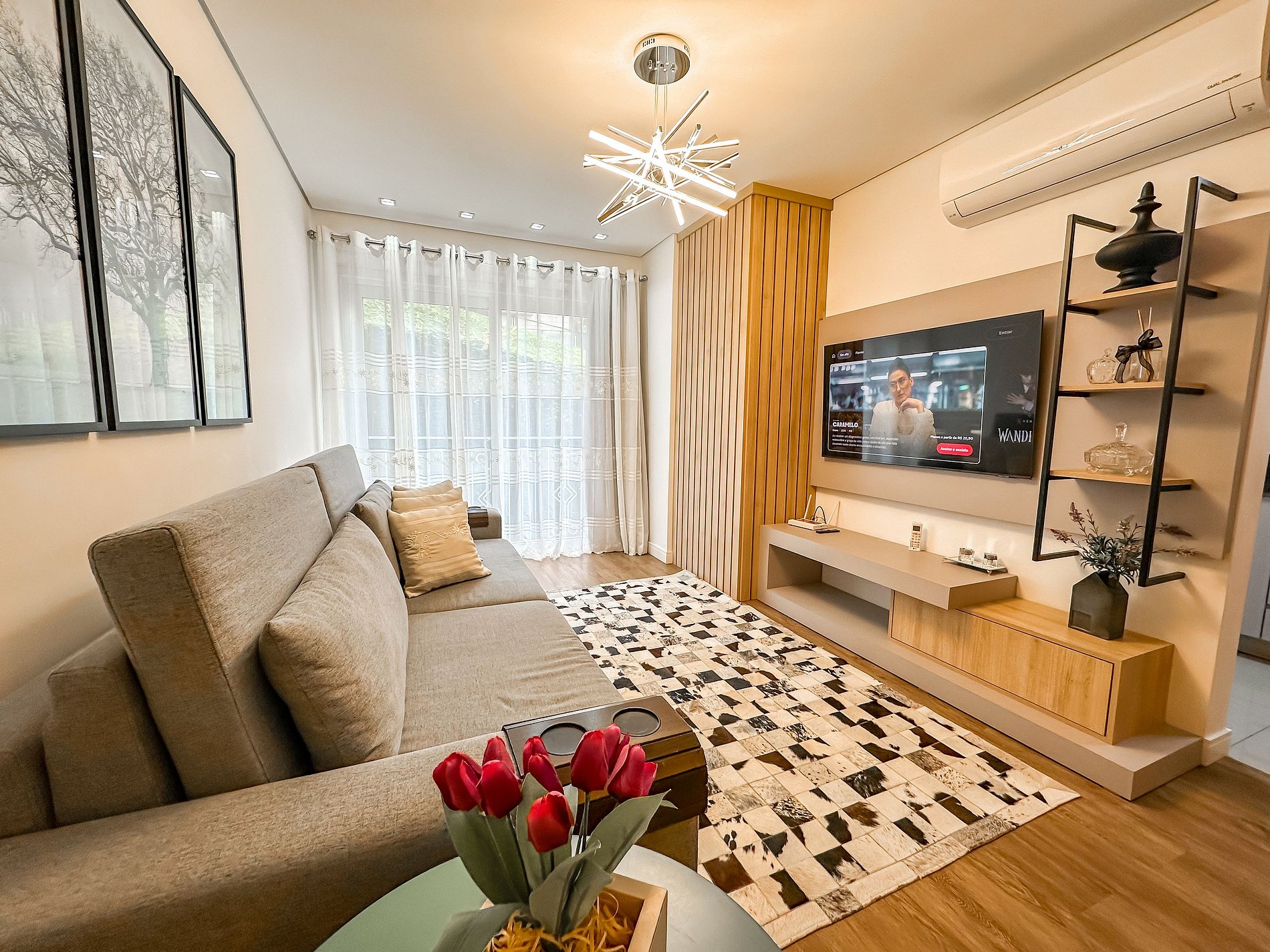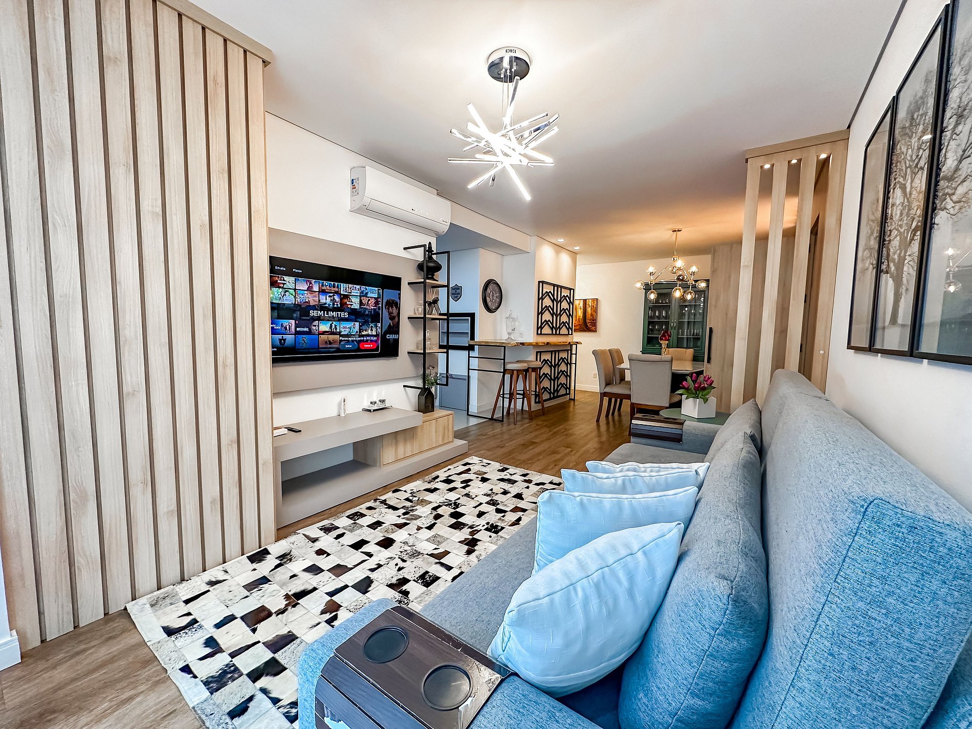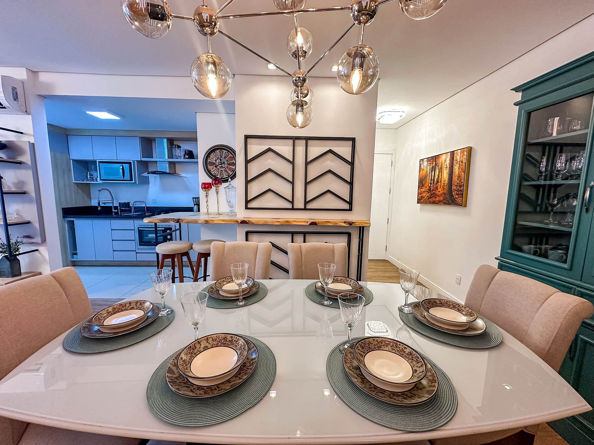 Moderno, em prédio novo, com 2 suítes, Wi-Fi, Smart TV, cozinha completa e 2 vagas de garagem.
