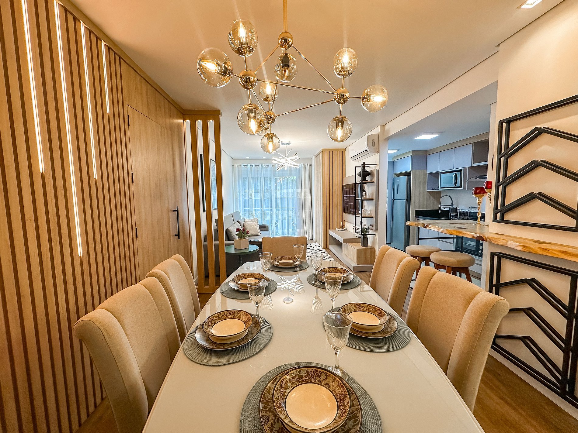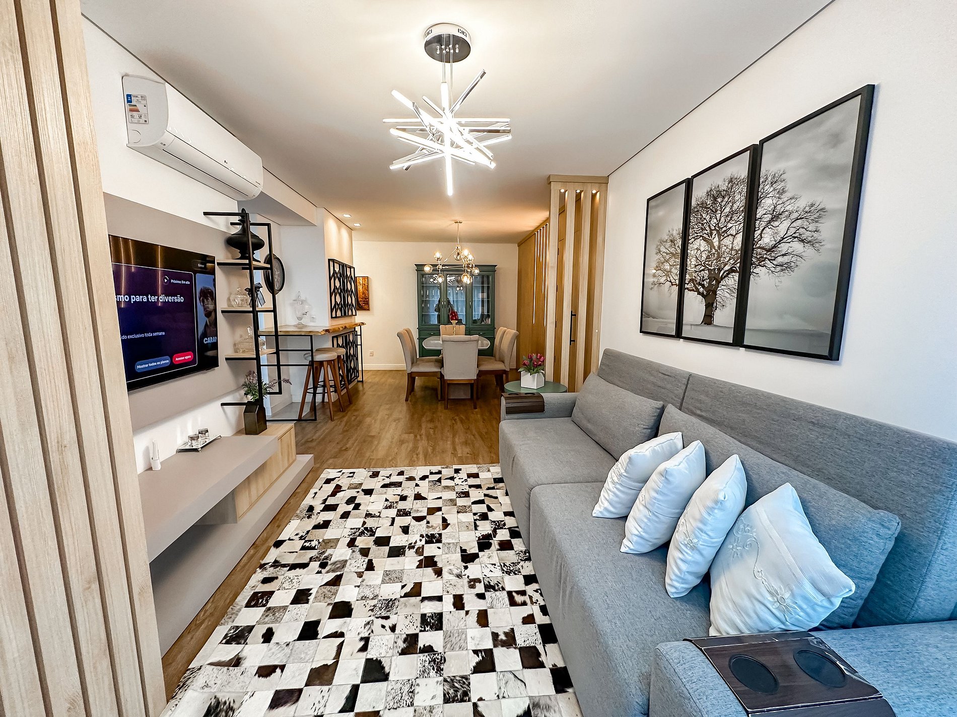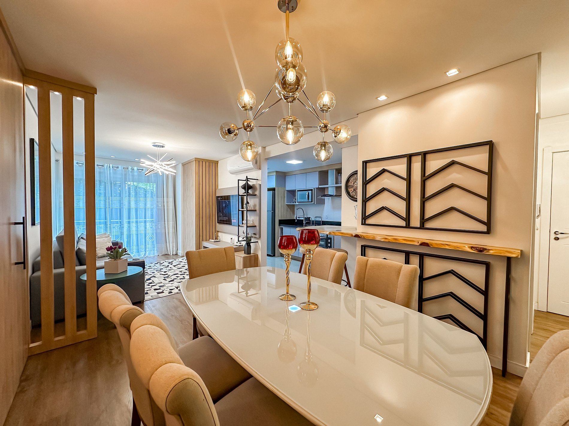 Moderno, em prédio novo, com 2 suítes, Wi-Fi, Smart TV, cozinha completa e 2 vagas de garagem.