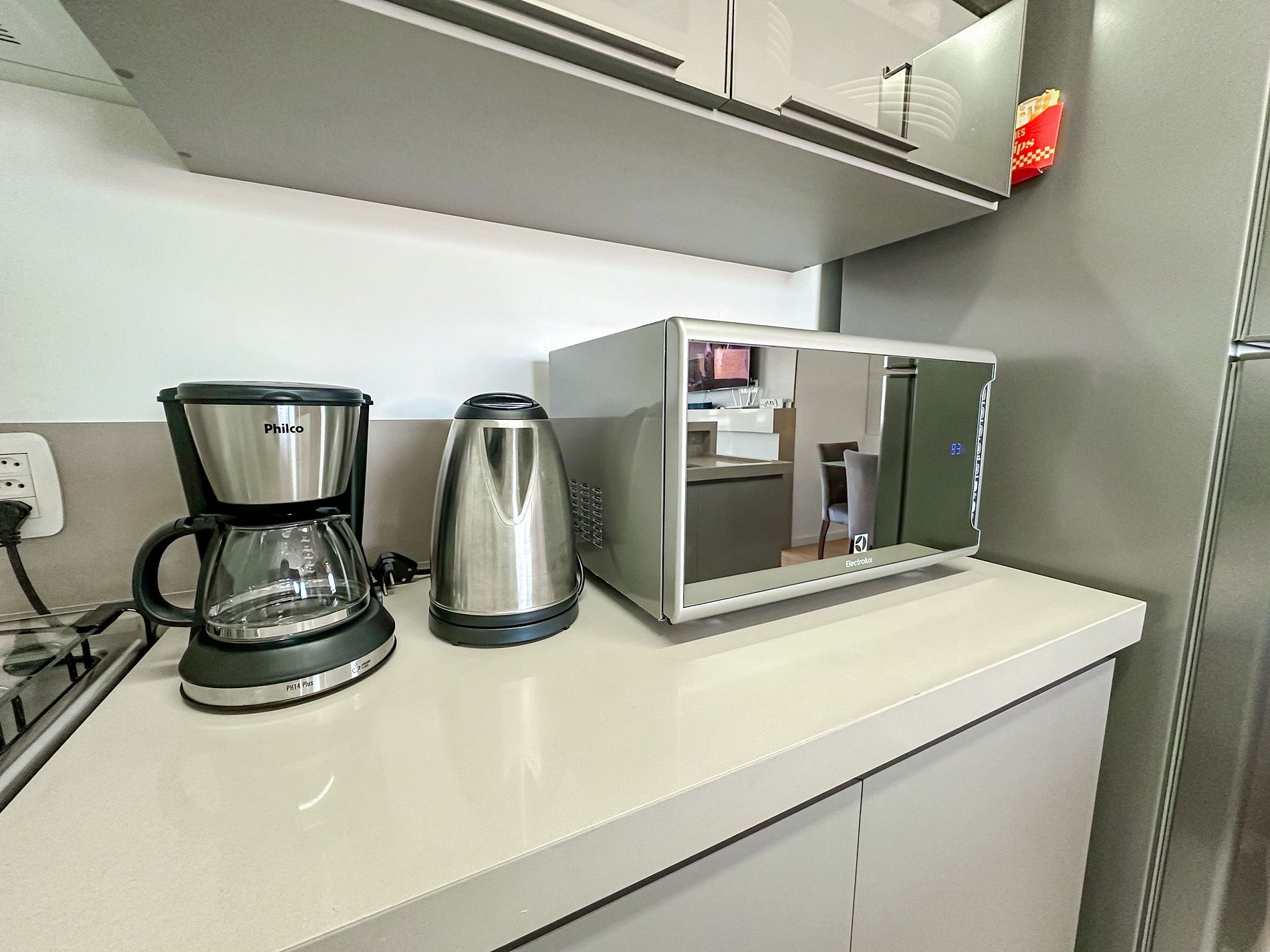 - Cozinha completa, equipada com fogão, forno e microondas e cafeteira.