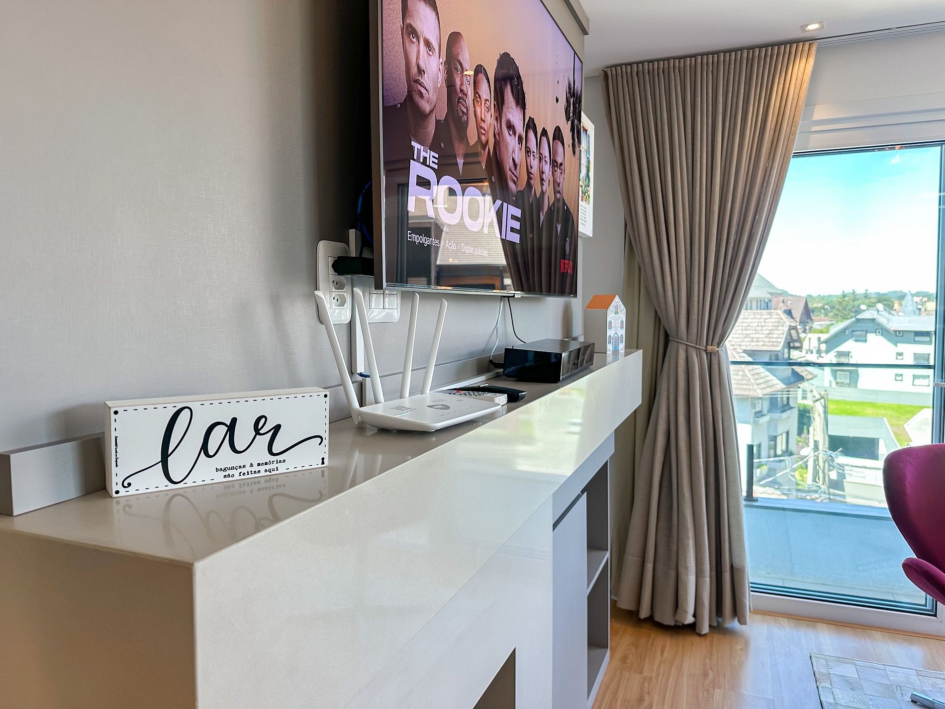 - Smart TV na sala e na suite principal;