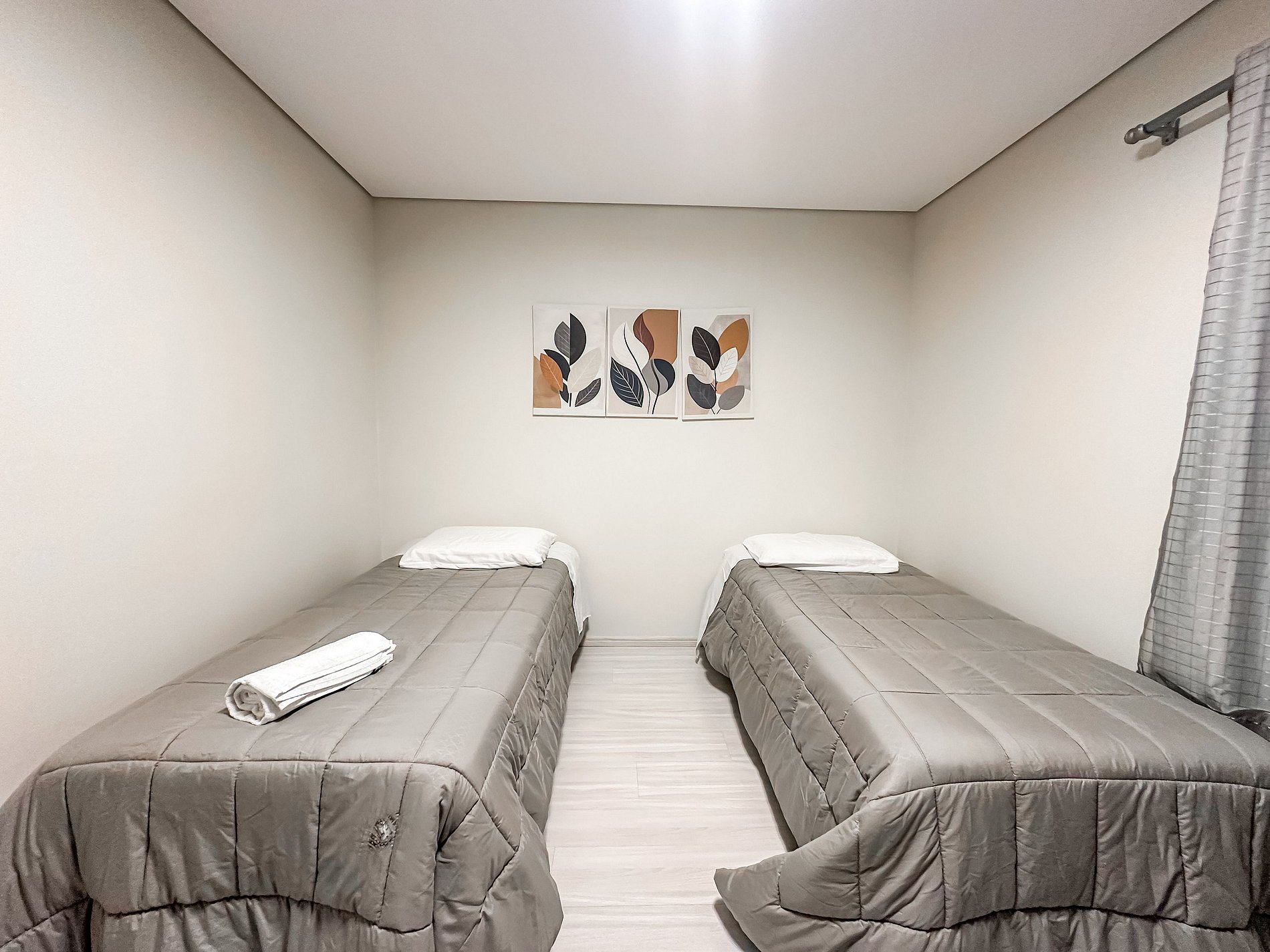 - 1 dormitório (duas camas de solteiro + 2 camas auxiliares de solteiro + ar condicionado quente e frio);