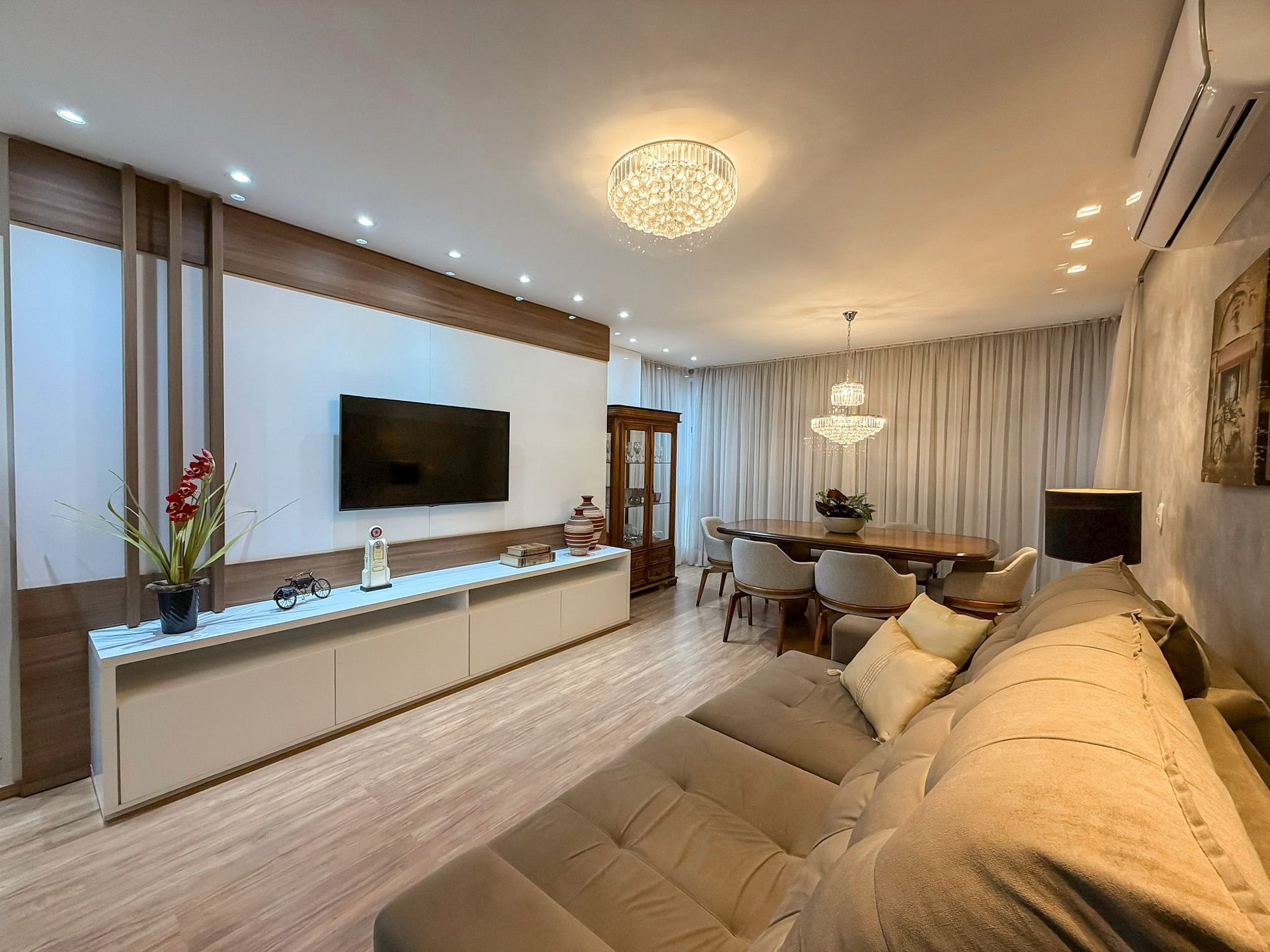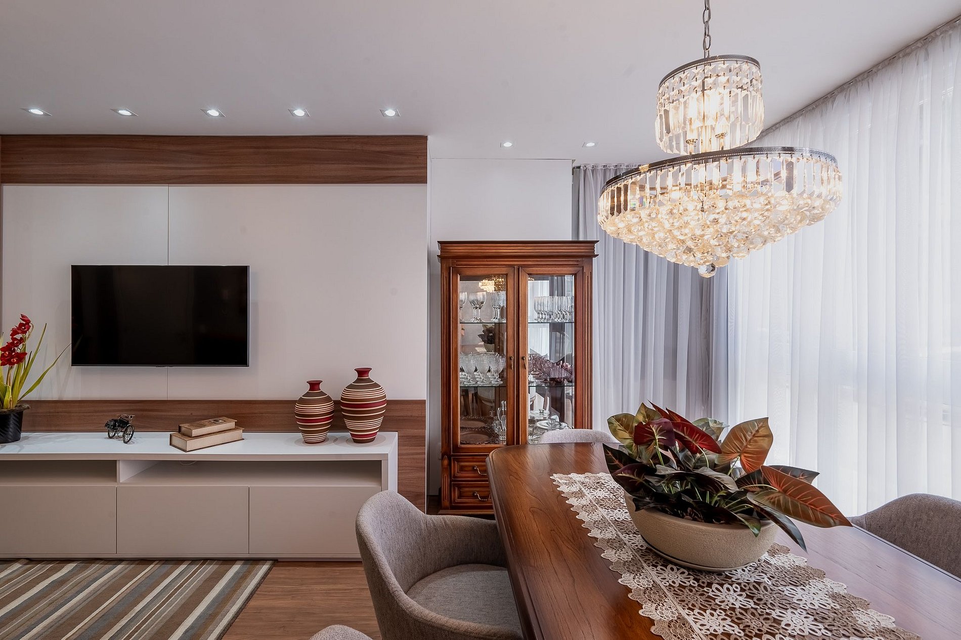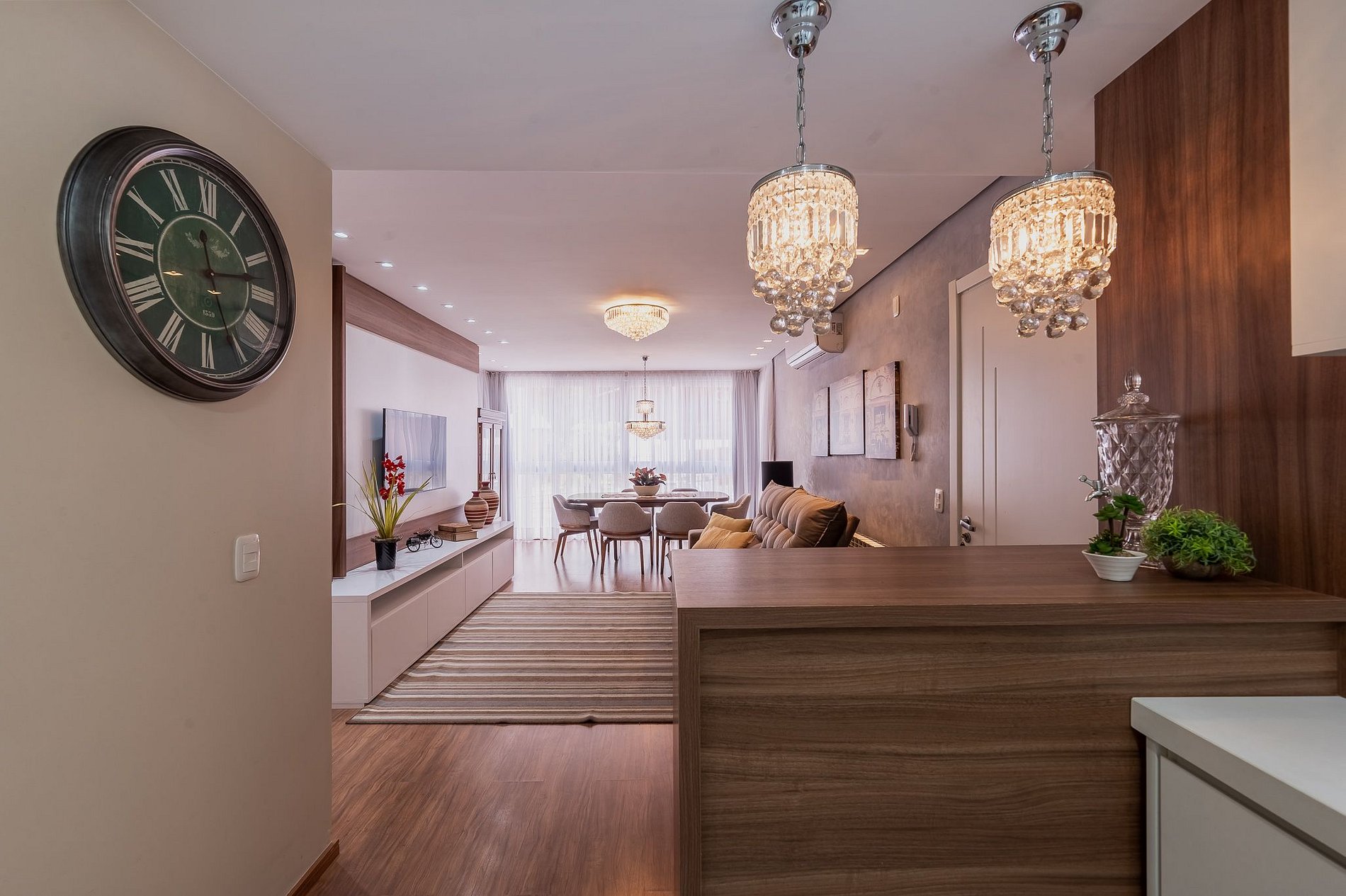 Ambientes amplos, bem iluminados e ventilados, com grandes janelas que deixam a luz entrar e trazem a beleza de Gramado para dentro do apartamento.
