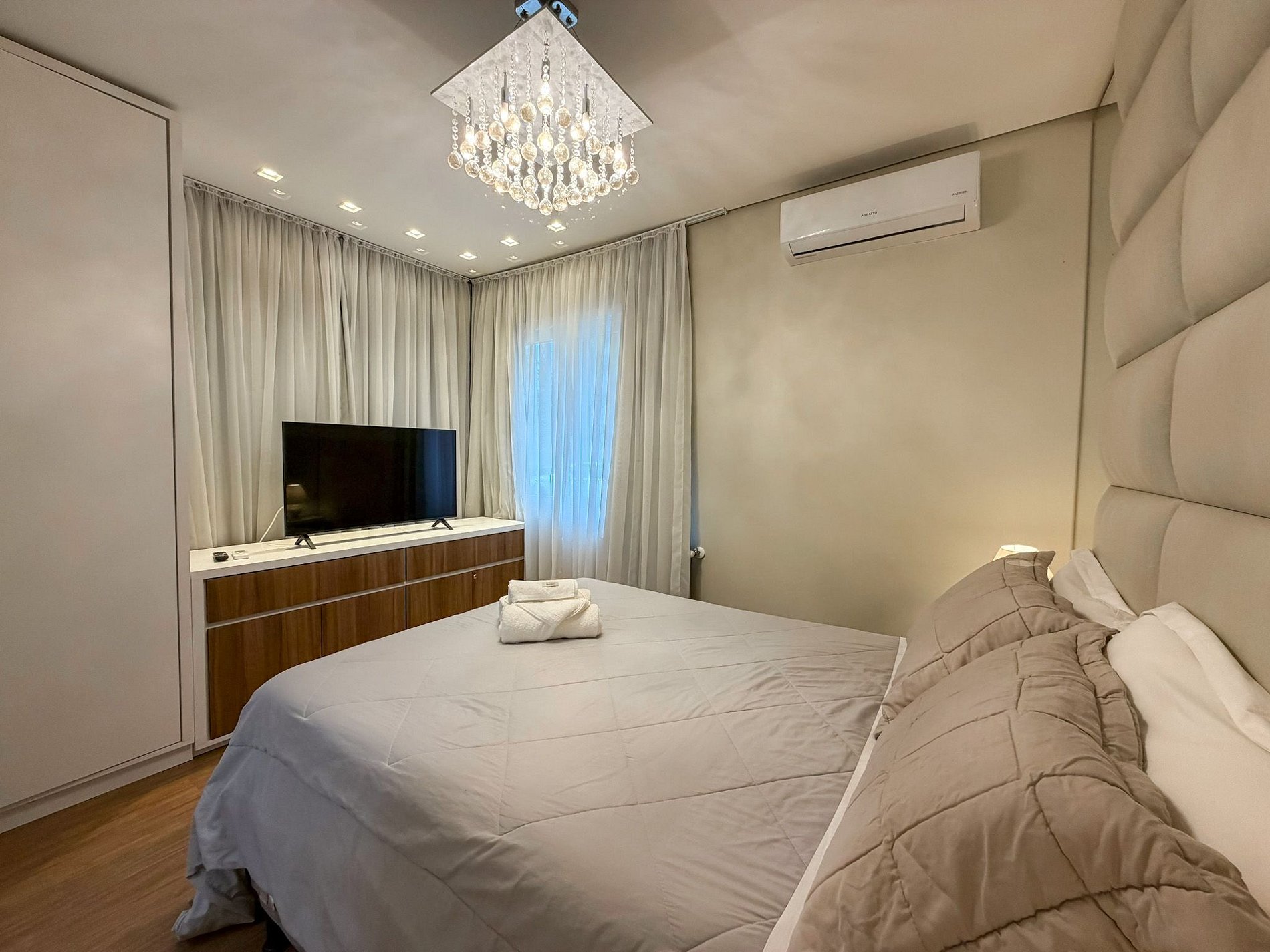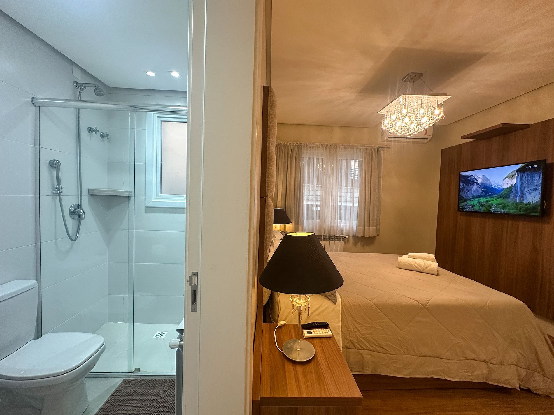 - 1 suite ( cama casal + split quente e frio + smart tv );