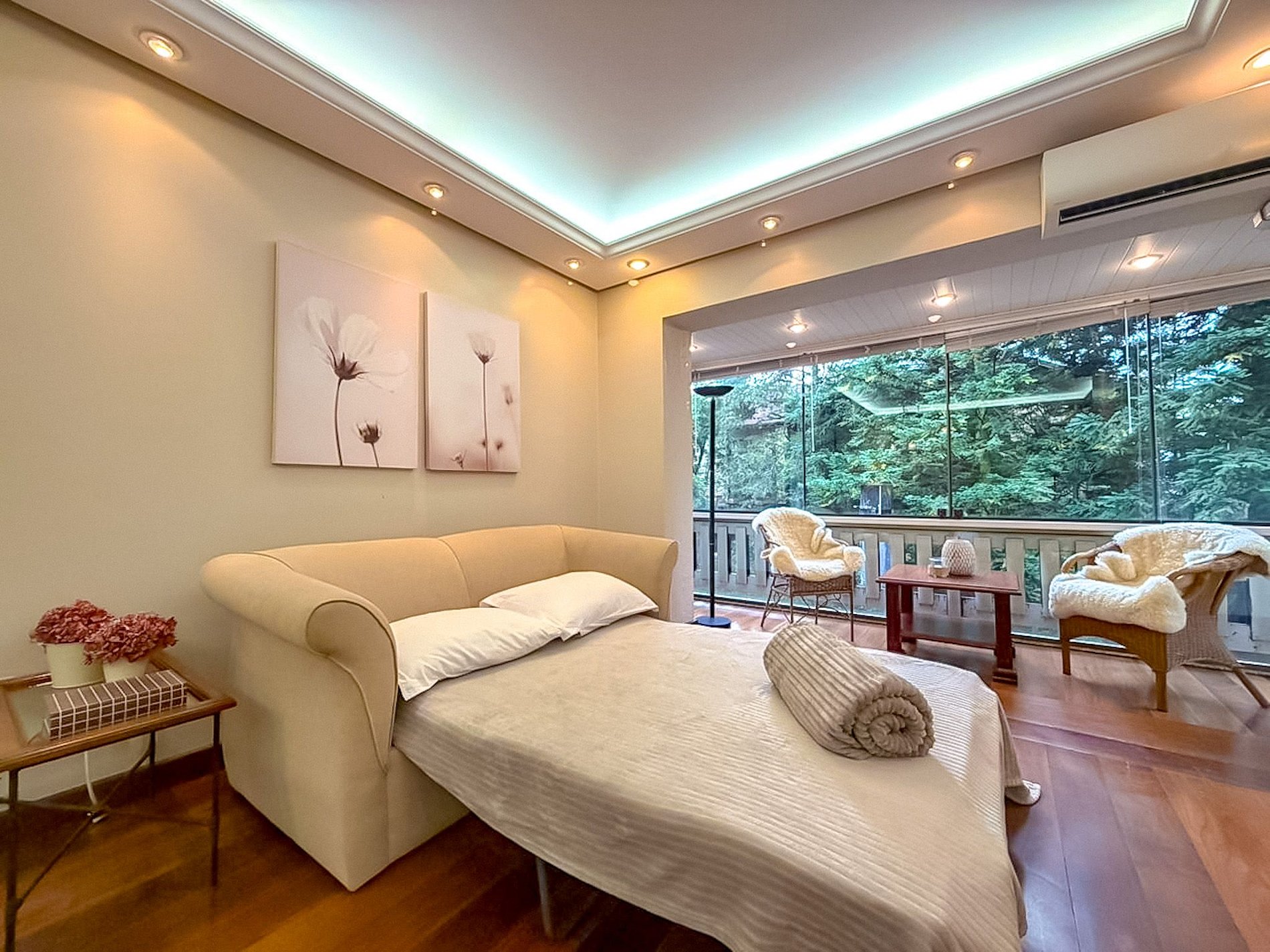 - Sala (sofá-cama para 2 pessoas + ar condicionado quente e frio + TV);