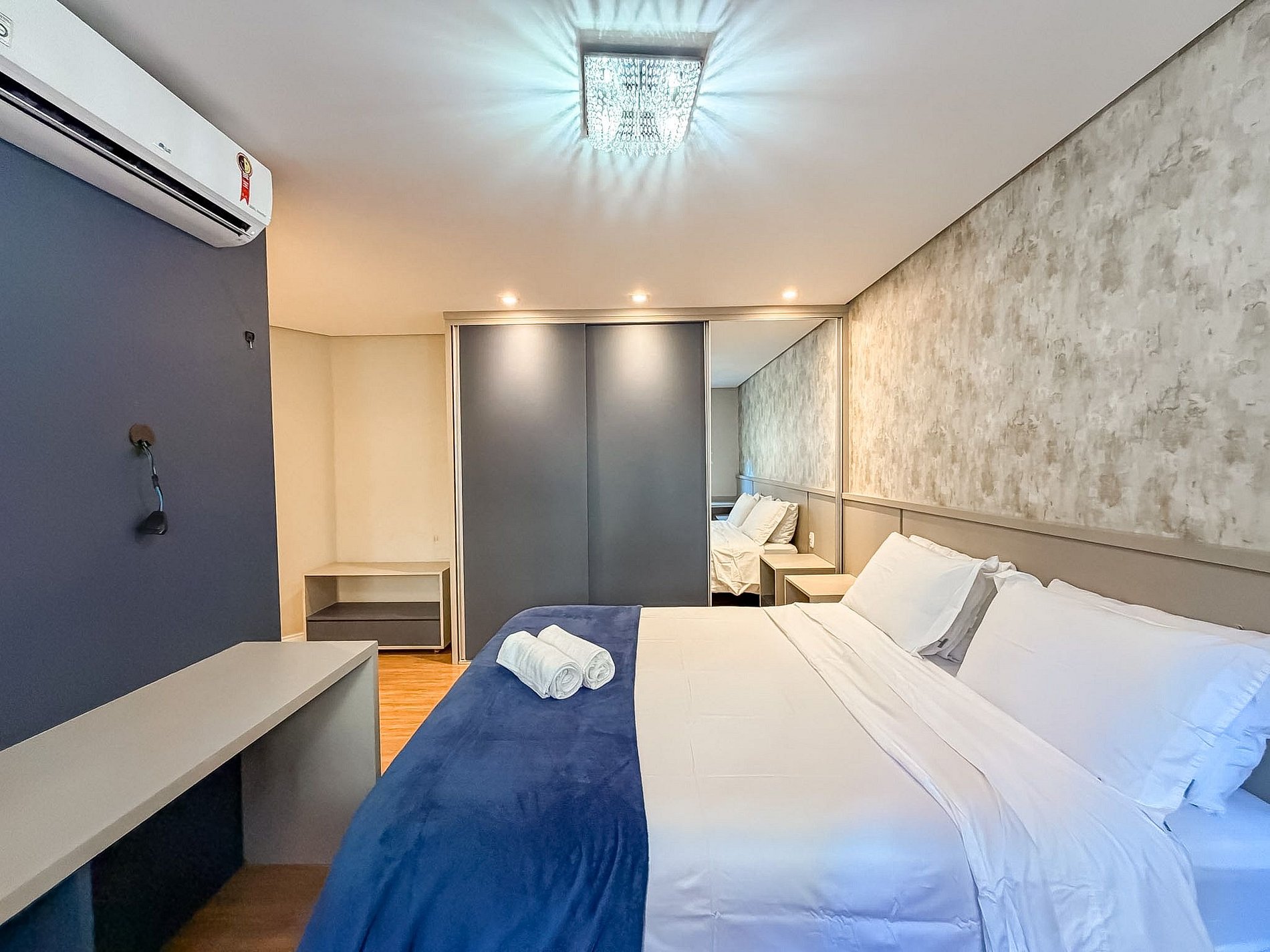 -1 suite ( cama queen + split quente e frio + 1 cama auxiliar de solteiro )