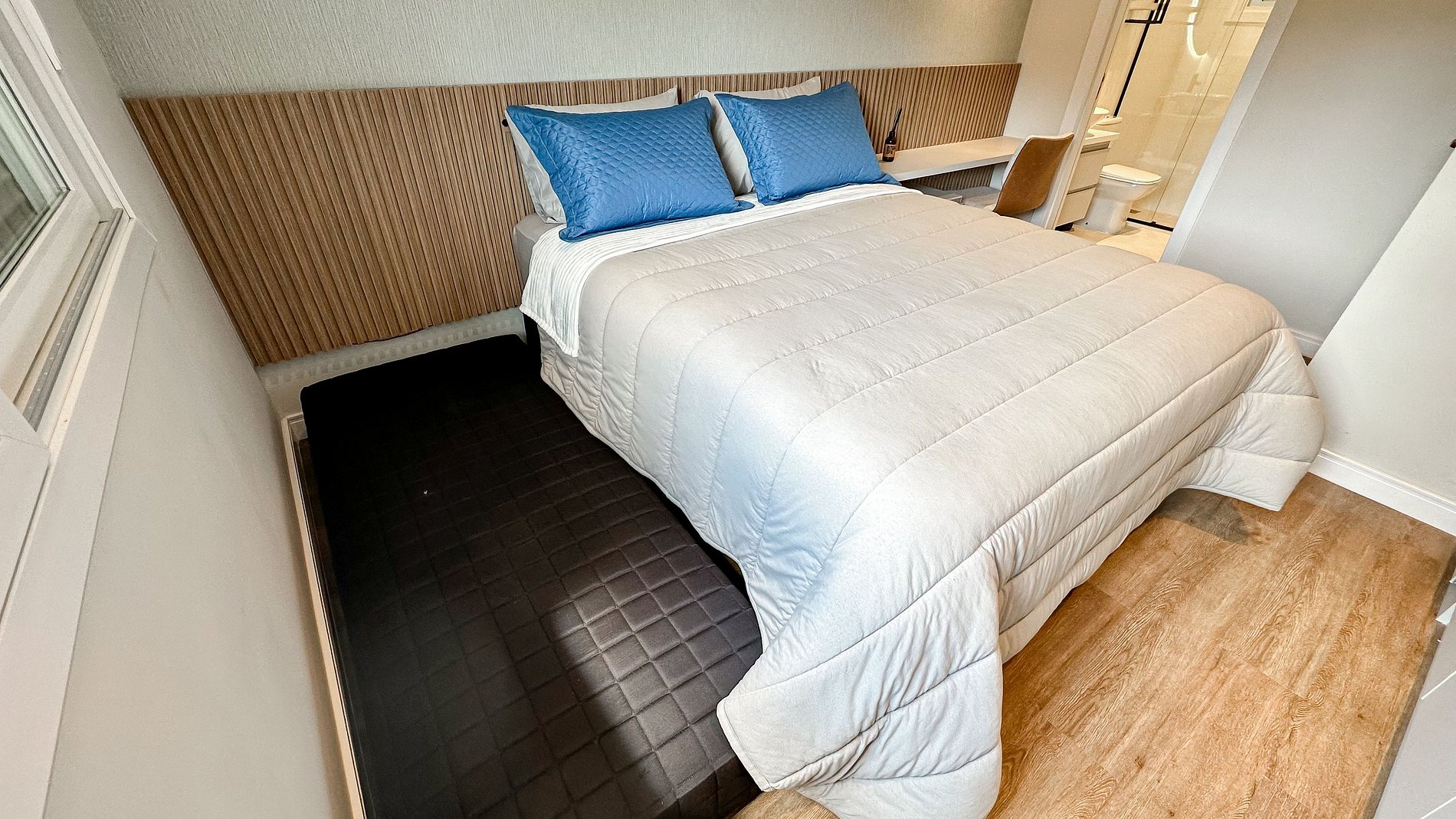 1 dormitório ( cama de casal + banheiro + split quente e frio + cama auxiliar)