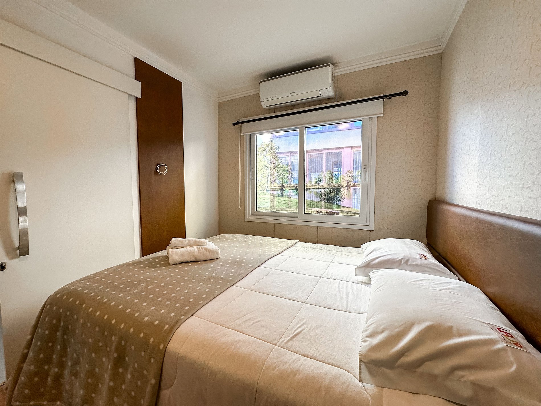1 dormitório ( cama de casal + cama auxiliar + split quente e frio)