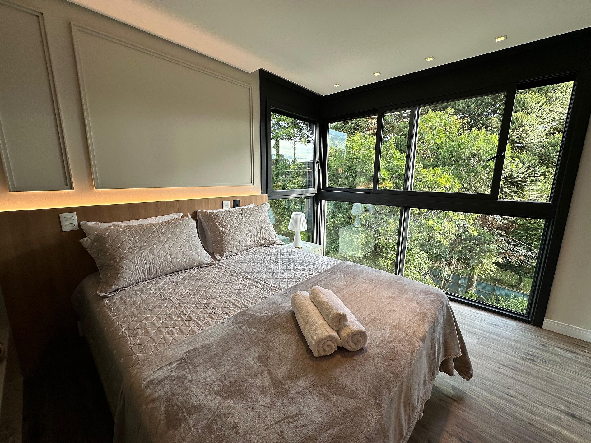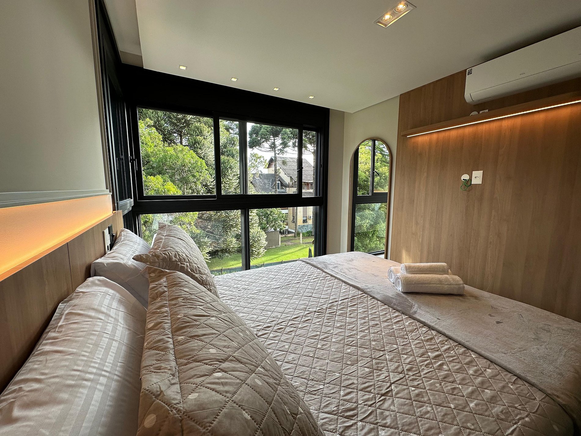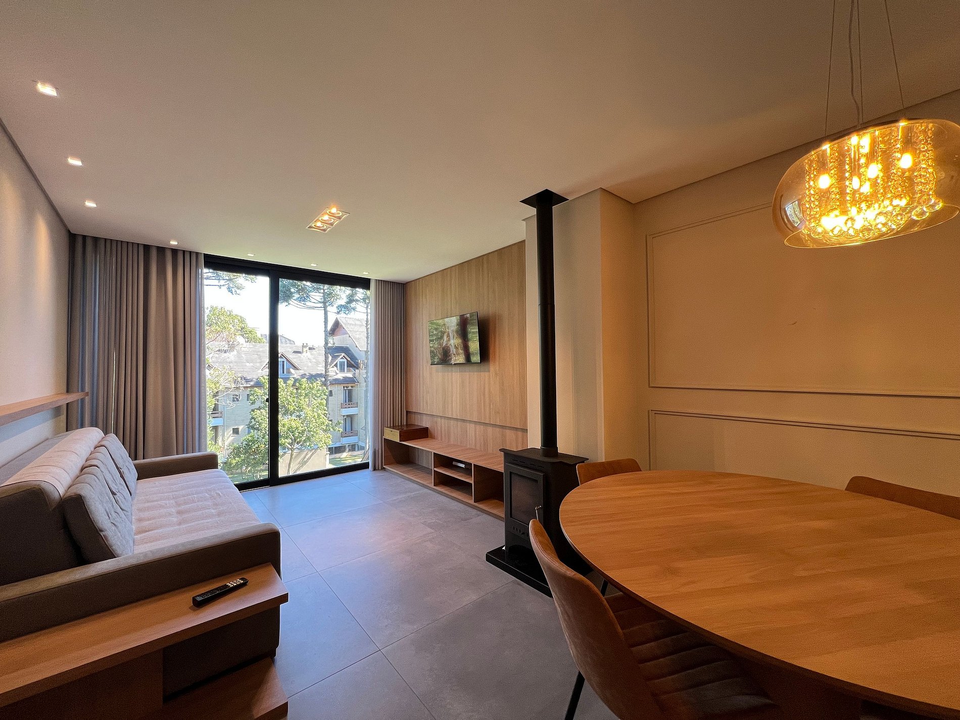 Nosso apartamento foi pensado para proporcionar conforto e bem-estar durante sua estadia na Serra Gaúcha. Com móveis novos e elegantes, o espaço de um quarto acomoda até 5 pessoas com: