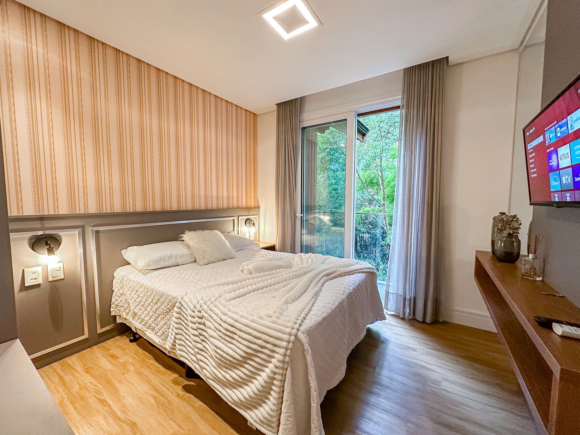 Nosso apartamento foi pensado para proporcionar conforto e bem-estar durante sua estadia na Serra Gaúcha. Com móveis novos e elegantes, o espaço de um quarto acomoda até 6 pessoas com:
